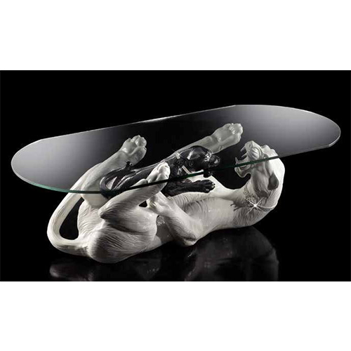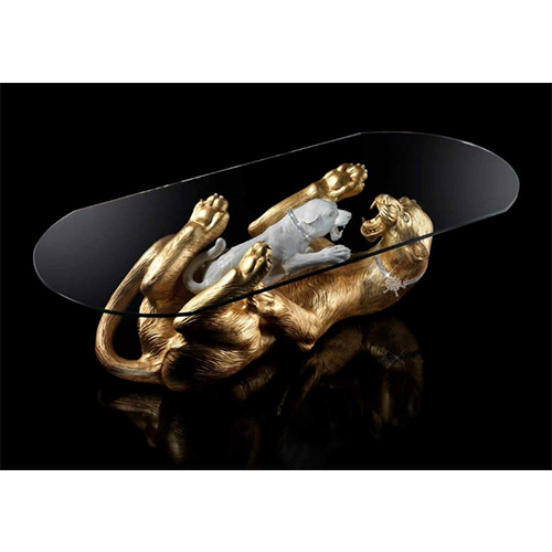 —Стол с изображением лежащей пантеры и маленького детёныша под стеклом
