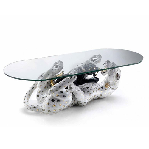 Стол с изображением лежащей пантеры и маленького детёныша под стеклом